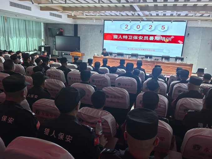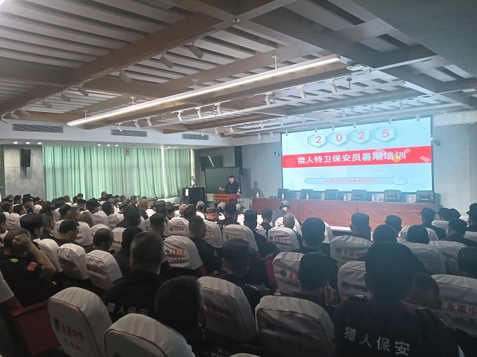在這個充滿活力的暑期,浙江獵人特衛安保集團有限公司圓滿完成了2025年暑期保安員輪訓計劃,旨在全面提升保安隊伍的專業素養與應急處理能力,為校園安全保駕護航。經過四天緊張而充實的培訓,本次輪訓于8月7日在永康中學圓滿落下帷幕。此次輪訓,不僅提升了保安員們的專業技能,更強化了他們的服務意識與團隊協作能力,為公司塑造了一支更加專業、高效的保安隊伍。