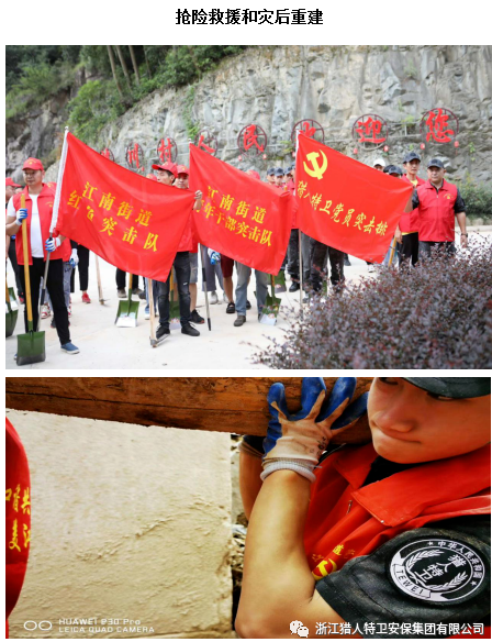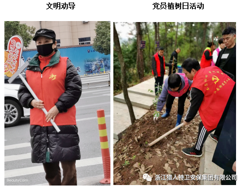 從廣義方面理解,積極主動擔當社會責任是保安服務企業一種可持續發展的戰略思想,是我們保安服務公司和保安員的本職和道德責任延伸,是樹立企業和保安職業良好形象的重要方式。為了在人員密集場所、城市互通道口、定點醫療機構防疫管控中充分履行社會責任,浙江獵人特衛安保集團有限公司專門組建了“疫情防控應急機動隊”;在社會綜合治理、災害防范和救援、災后重建、愛心慈善等方面,為了能夠承擔更多的社會責任,由黨組織牽頭,專門成立“黨員突擊排”和“退役軍人先鋒隊”。