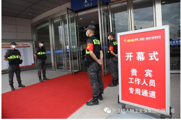 第11屆中國(永康)國際門業博覽會于5月26日在永康國際會展中心盛大開幕。負責門博會安保的浙江獵人特衛安保集團有限公司每天出動“黨員突擊排”、“退役軍人先鋒隊”、“特衛機動大隊”、“女子特衛中隊”及各執勤點選調的保安員180余人,全程護航來自上海、北京、江蘇、四川、重慶、河北、遼寧等23個省(市)以及日本、德國、美國等國家和地區的客商圍繞家家戶戶必備的這道“門”開展交流合作、共享發展商機。