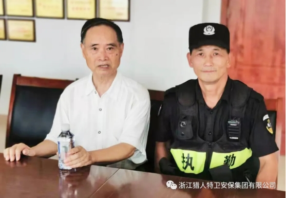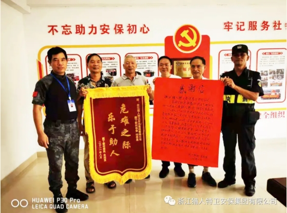 昨日下午,家住園丁新村朱招銀老人,由園丁新村業委會領導陪同,拿著錦旗和感謝信來到公司,緊緊的握著保安員胡根基的手,激動的說“謝謝,謝謝你救了我的老伴,保安保安,真正的保一方平安啊!”