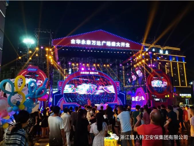 本次開業慶典活動持續了三天,期間隆重推出了無人機天幕秀、網紅電音節等活動,隨時隨地都能感受到為永康萬達廣場奔赴而來的人山人海。在人氣爆棚的安保現場,既要管控好疫情風險,又要確保觀眾潮有序流動,對我司現場安保力度及管理人員的臨場能力提出了嚴峻的考驗。但在項目總指揮徐 斌的統籌和協調下,全體隊員堅守崗位、無私奉獻,克服了客流量巨大,工作時間持續長、社會關注度高,天氣悶熱等不利因素,將安保工作做到了萬無一失,圓滿完成了本次開業慶典安保任務,充分展現了永康“獵人鐵軍”的優良作風。 主辦方及市公安局領導對我司在現場防疫管控、活動導流、現場維穩、應急事件處理、顧客詢問解答等方面的專業能力表示高度認可并提出了表揚。在為期三天的開業慶典期間,獵人特衛保安隊員們成為了萬達廣場最亮麗的風景線!