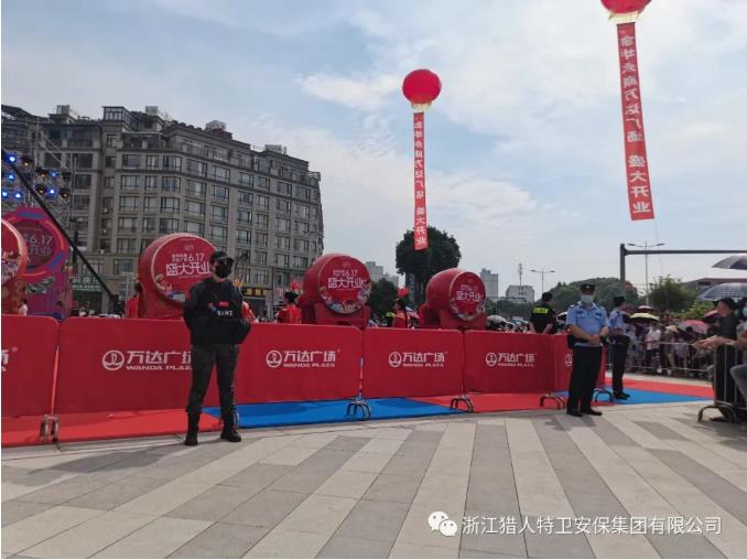 2022年6月17日上午8:00,歷經數月籌建及精心打磨浙江省第二十二座萬達廣場——金華永康萬達廣場在萬眾矚目中如期綻放!浙江獵人特衛安保集團有限公司以強烈的政治擔當、使命擔當、責任擔當,對標“細致、精致、極致”營商工作標準,主動作為、主動對接、積極服務,提前謀劃、精細安排,抽調精干安保力量近千人次為本次開業慶典全程提供安保服務,為這座永康新地標的首次亮相提供了堅強的后盾!