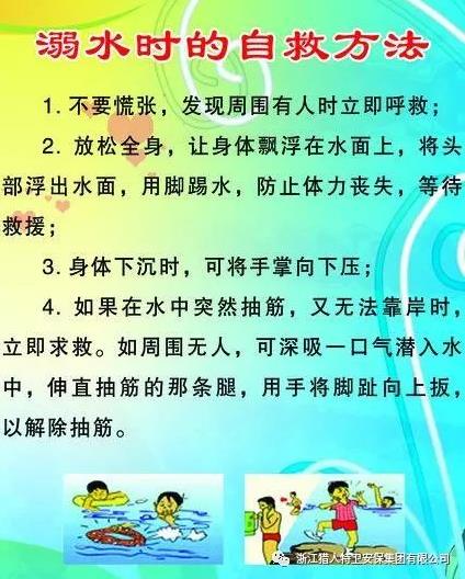 溺水是造成中小學生意外死亡的第一殺手。天氣逐漸變熱,希望廣大家長務必加強對孩子的教育和管理,經常進行防溺水等方面的安全教育,給孩子傳授相關知識和技能,不斷加強孩子安全意識和自我保護意識,提高孩子們的避險防災和自救能力,嚴防意外事故的發生。1、不要慌張,發現周圍有人時立即呼救;