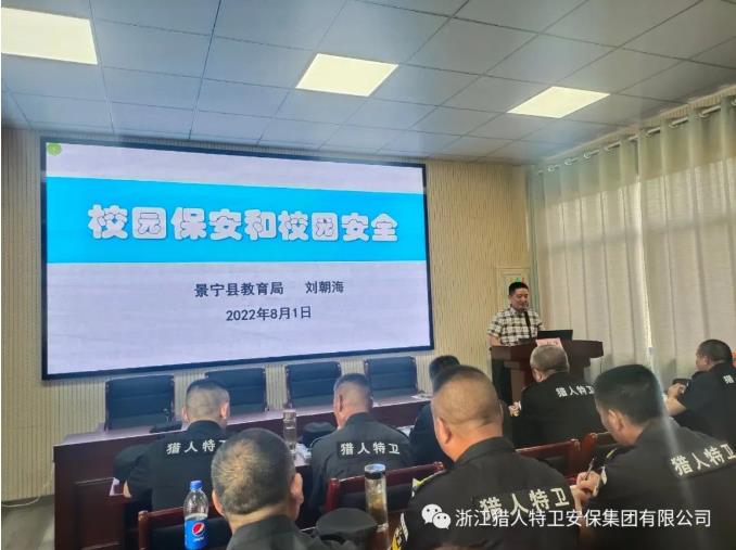 為進一步提升校園保安員綜合業務素質和履行職責能力,切實發揮校園保安人員在校園安全保衛工作中的作用,著力推動打造平安校園。2022年8月1日,浙江獵人特衛安保集團有限公司景寧分公司聯合景寧縣成人文化技術學校舉辦2022年景寧縣教育系統保安員職業技能提升系列培訓。