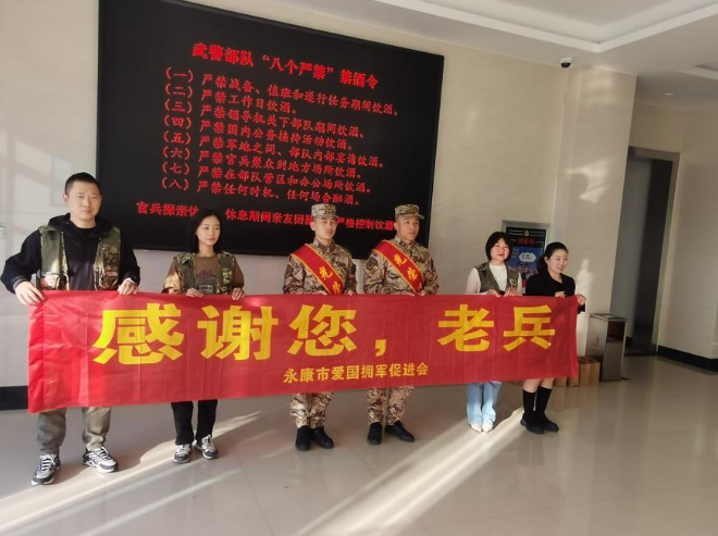 時序更迭,又一批老兵退役了。11月29日下午,永康市愛國擁軍促進會副會長單位----浙江獵人特衛安保集團有限公司聯合永康市退役軍人事務局及其他會員單位一起歡送退役老兵。這批老兵在軍營服役12載,他們把最好的時光和青春獻給了國家、獻給了軍營、獻給了永康。
