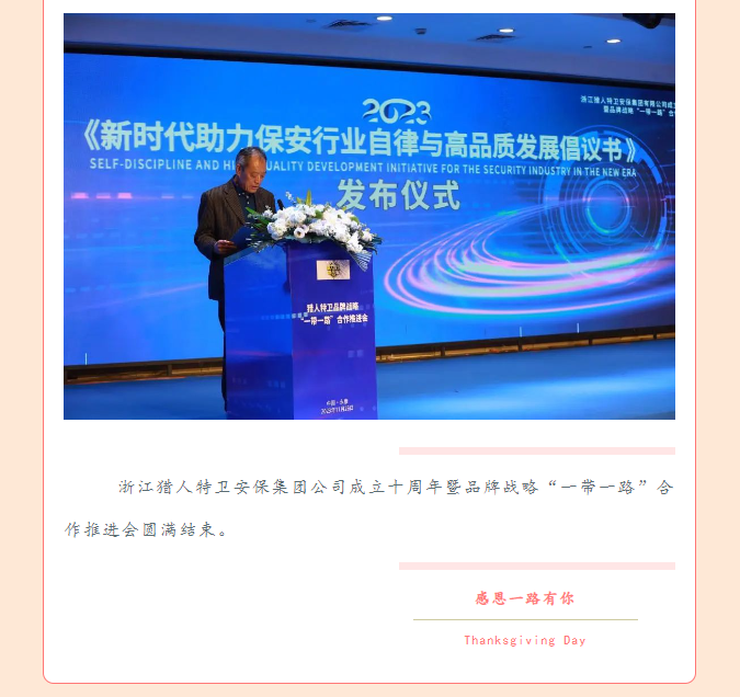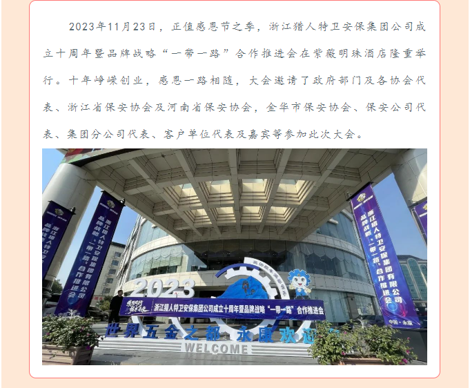 十年崢嶸,感恩相隨——浙江獵人特衛(wèi)安保集團(tuán)公司成立十周年暨品牌戰(zhàn)略“一帶一路”合作推進(jìn)會(huì)