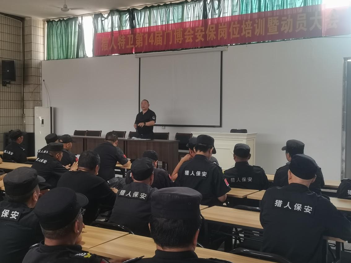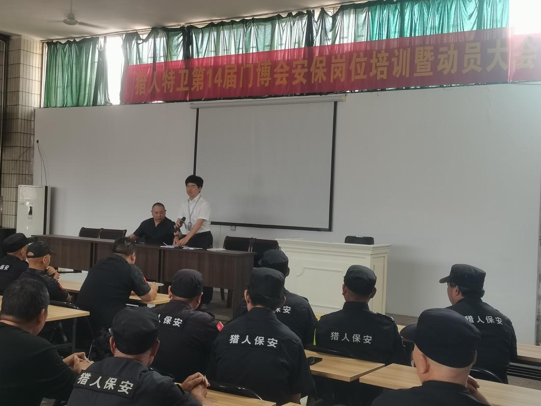 第14屆中國(永康)國際門業(yè)博覽會將于5月26日---28在會展中心召開。為切實做好本次門博會安保工作,浙江獵人特衛(wèi)安保集團有限公司提前謀劃,按照“統(tǒng)一指揮、分級負責、整體聯(lián)動、無縫對接”的“大暢通、大安保”總體要求,于5月19日集中全體參勤保安人員、應(yīng)急機動隊員及后勤保障人員在培訓(xùn)基地召開門博會安保動員大會暨“防火、防盜、防暴恐、防擁擠踩踏、防安全事故”等全要素安保技能培訓(xùn)。會展中心安保經(jīng)理方 達特約參會。