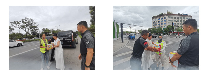 公司總經(jīng)理潘英親自帶隊(duì),深入一線,一方面送上清涼飲品,一方面給予精神鼓勵(lì),希望文明勸導(dǎo)員、保安員們?cè)趫?jiān)守崗位的同時(shí),關(guān)注愛(ài)護(hù)自己,注意防暑降溫,履職盡責(zé)堅(jiān)守好工作崗位,為守護(hù)一方平安作貢獻(xiàn)。