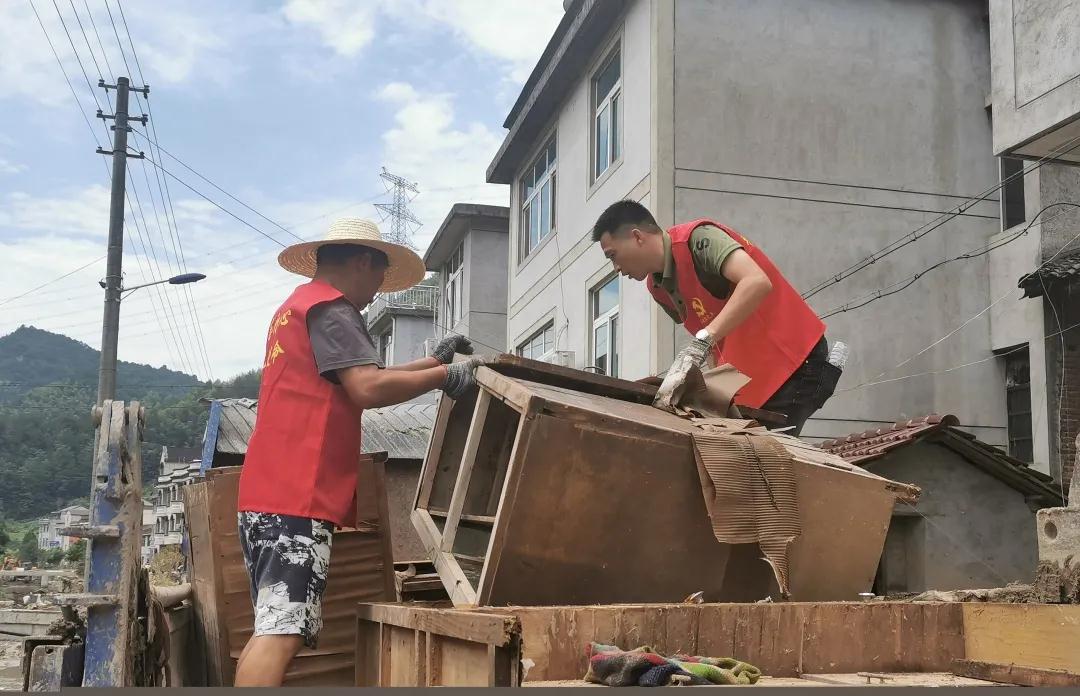 花街鎮(zhèn)是永康市村級組織換屆試點鎮(zhèn)。8月8日村級黨組織換屆剛剛結束,9日一早,8個行政村新任班子成員即刻奔赴“第一職場”——不在他們?nèi)温毜幕ń宙?zhèn),而是此次受災最嚴重的西溪鎮(zhèn)、唐先鎮(zhèn),組織開展了履新以來的第一次主題黨日活動,帶領全體黨員,分組投入受災村莊開展道路清障、河道清淤等工作,在救災一線上好“履職第一課”。