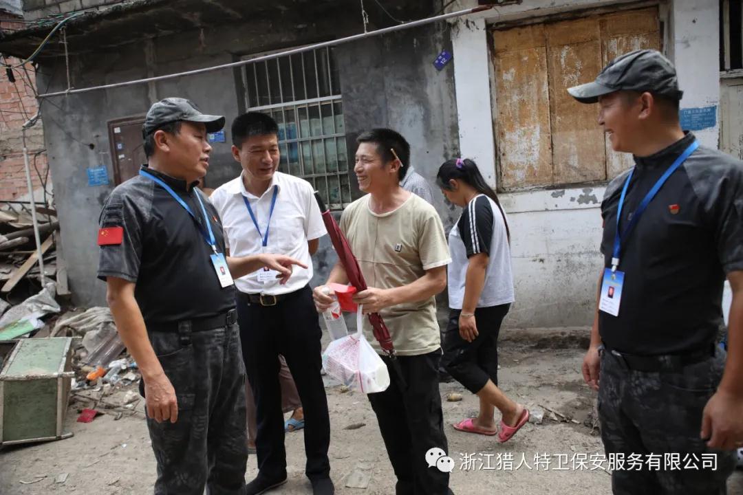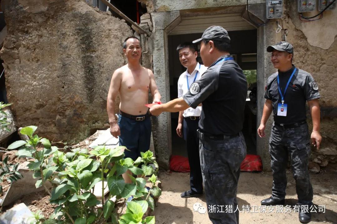 浙江獵人特衛保安服務有限公司董事長董飛躍密切關注災情,時刻牽掛著公司員工及其家屬的安危,公司黨支部、工會通過詳細了解,在掌握公司員工家庭受災情況后,為幫助他們渡過難關,8月10日,由公司常務副總經理盛安華帶隊,帶領黨支部、工會、人防部負責人趕赴災區現場,為4名受災慘重的員工及其家屬送去溫暖。